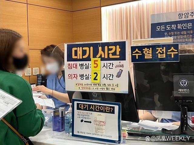 2月22日,延世大学附属Severance医院门诊接待处贴出“等待时间5小时”的告示。