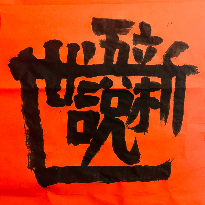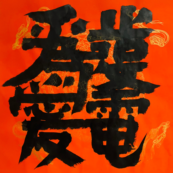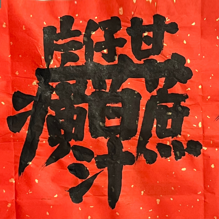 在漳州古城的《世说新语》露天展览中,邱志杰展出了一批用合体字的方式撰写的流行语。传统的吉祥语合体字如“日进斗金”“招财进宝”“金玉满堂”“黄金万两”等等,用今天的官方语言来说,可以说是“人民群众对美好生活的向往和期待”,是对未来的祝福。邱志杰书写的大多数是近年来网络上的“梗”。其实每年都有文字观察者和社会观察者评选网络流行语,他在互联网上查了2014年到2024年十年来每年的“十大网络流行语”,又从微博,小红书、抖音这些社交媒体中选了一些词。