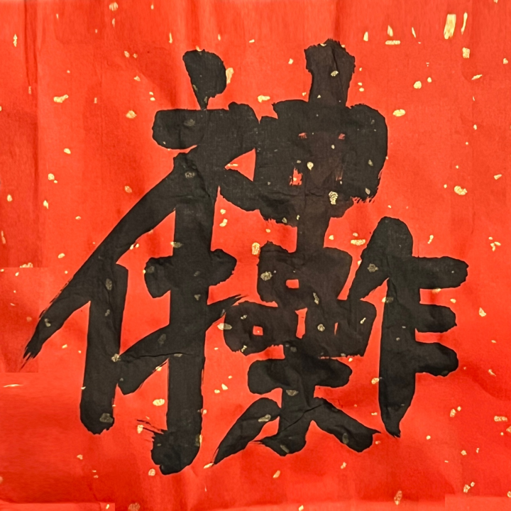 龙行龘龘,飞黄腾达。前程朤朤,光彩照人。生活䲜䲜,年年有余。身体壵壵,健康如意。