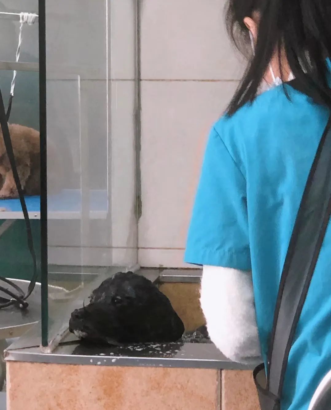 网友为狗狗取名lucky,带它去洗澡、体检,医生说它七八个月大,身体健康,检查结果一切正常~