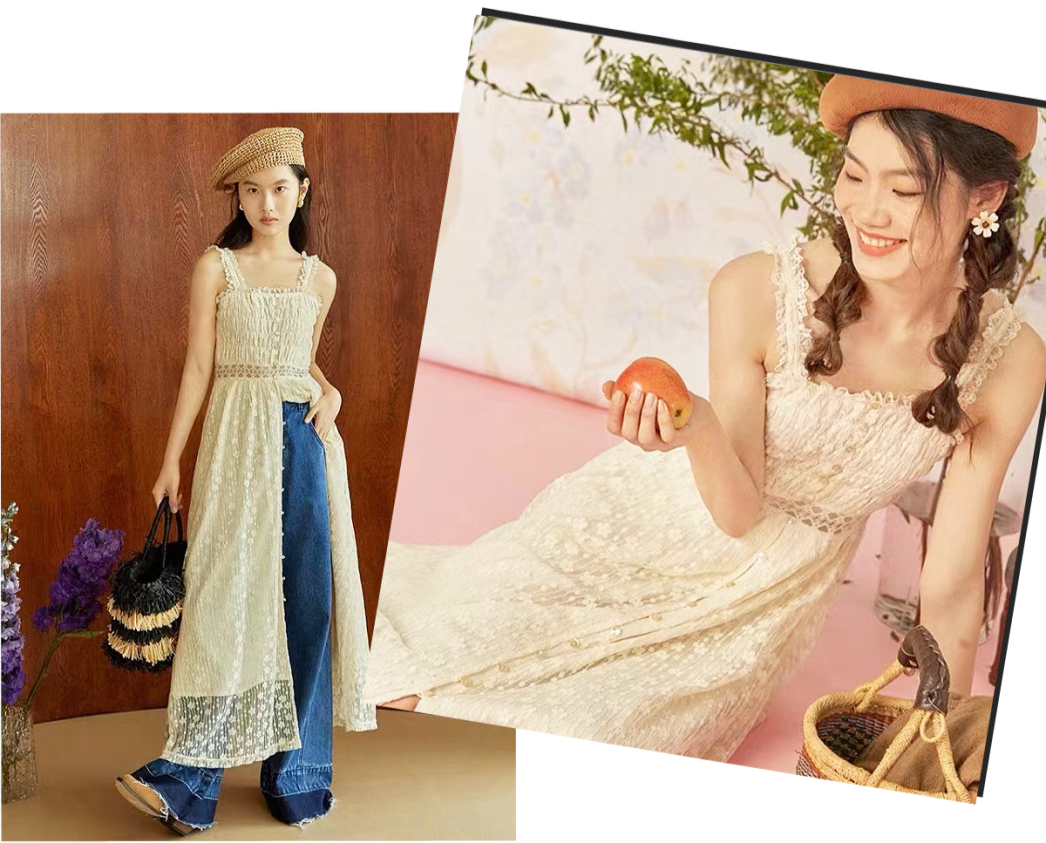 超重工的复古法式吊带蕾丝裙,就很有初恋的清纯感,奶甜奶甜的很上头。