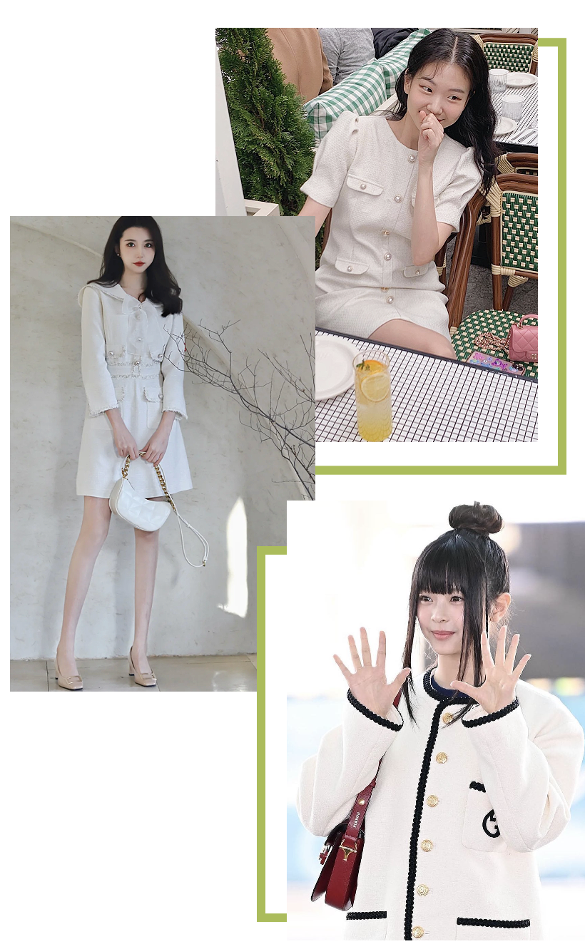 还有这种小香风的粗呢小白裙,穿上身就很精致有气质,穿上它迎接春天也太对味了~