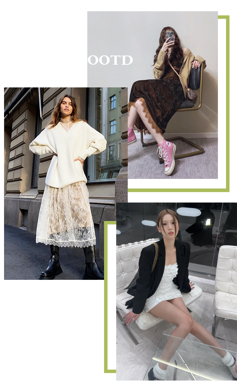 想要穿蕾丝裙不踩雷,最重要的一点就是混合材质。