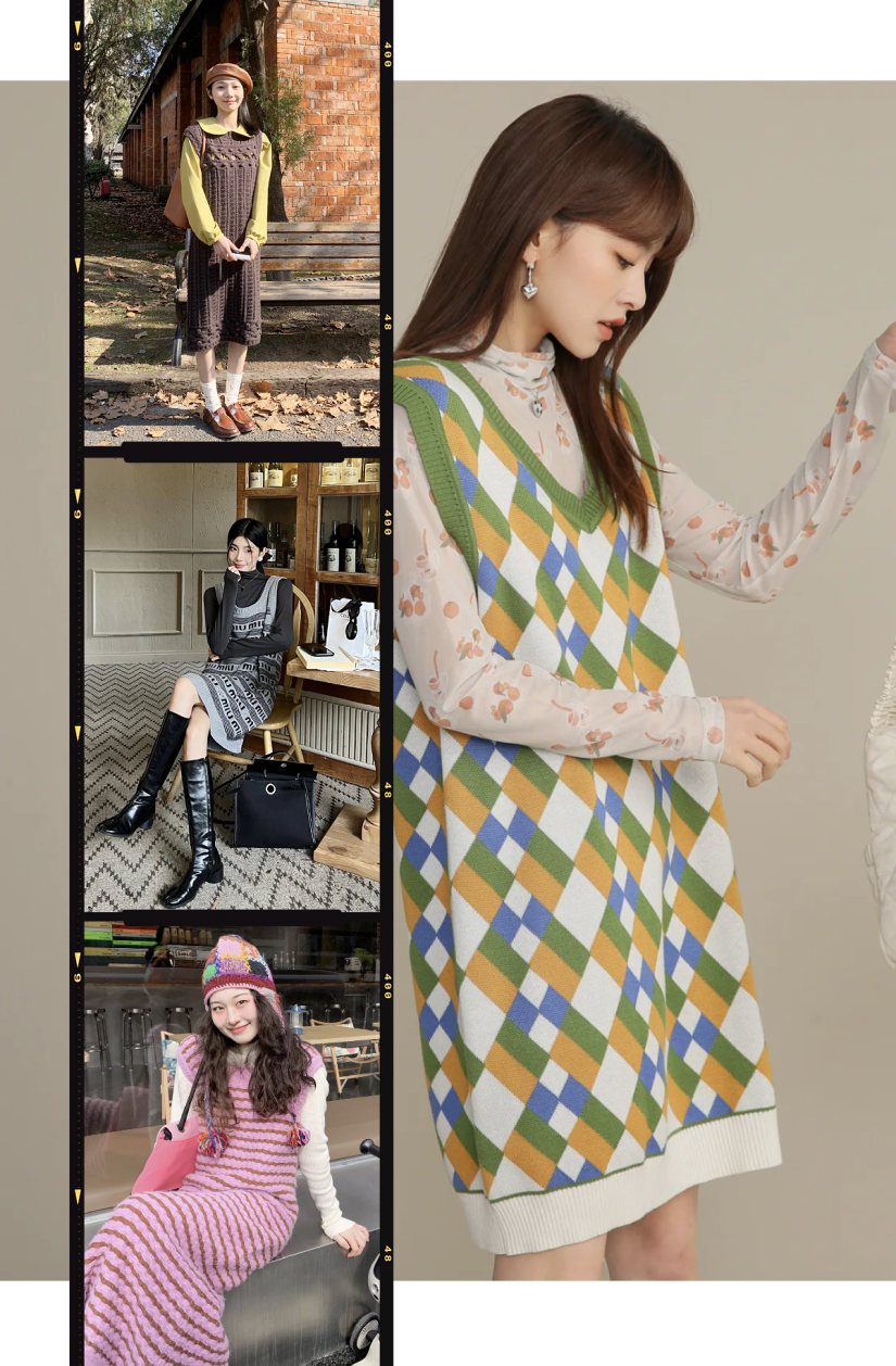 针织背心裙当然也要安排上,像这种版型宽松一些的,普通身材也hold得住~