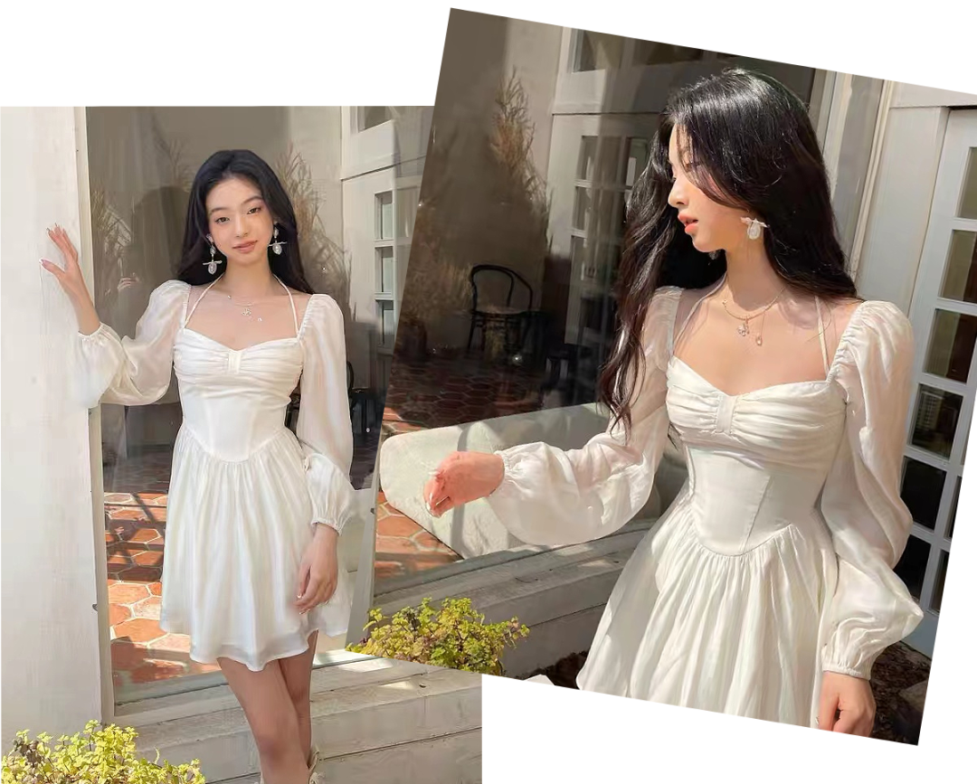 适当的露点肤也很好看,网上很火的鱼骨挂脖小白裙,纯欲性感,站在风景里就像一张油画。