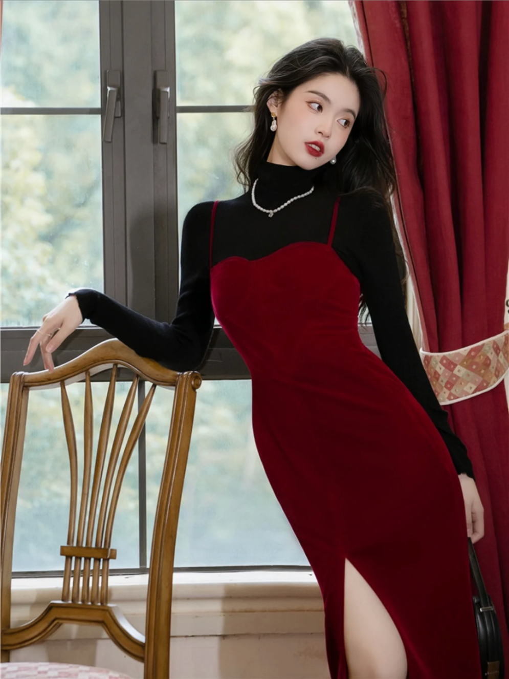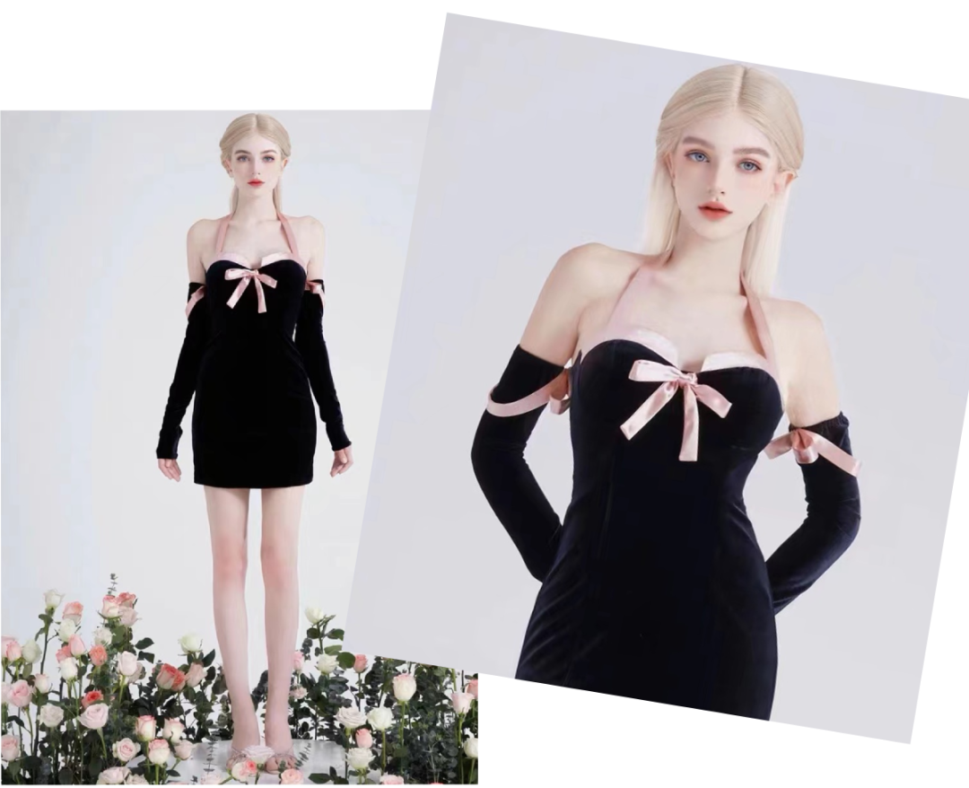 丝绒裙的材质本身会有一点反光效果,挑黑色的话会更加显瘦,微胖の小姐妹可以pick黑色哦~