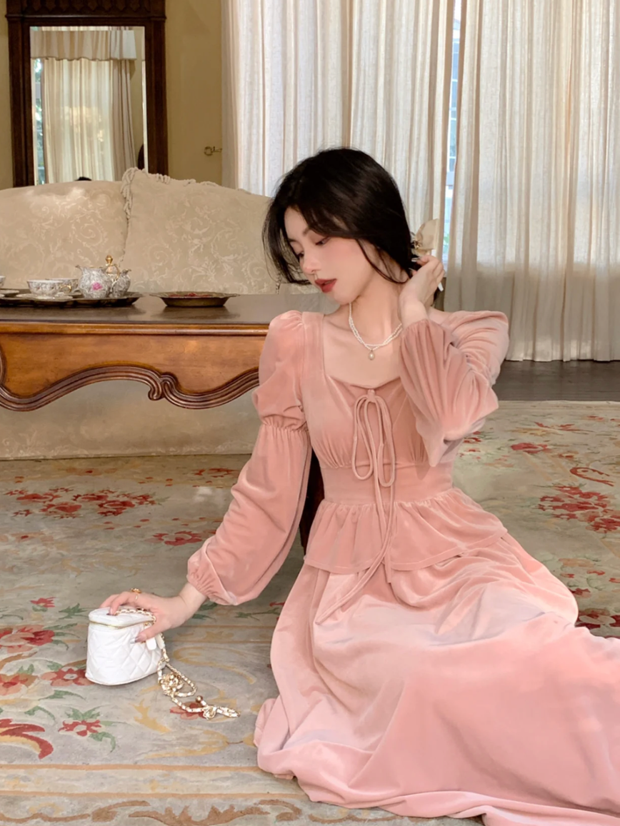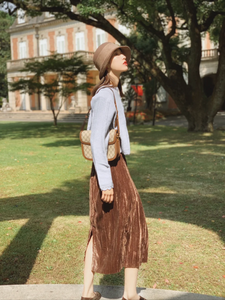 早春当然要穿丝绒小裙子呀,这种不冷不热的天气,穿它正好合适~