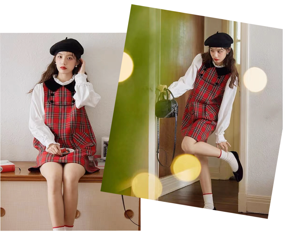 红色的格纹背心裙,真的是没办法抗拒啊~