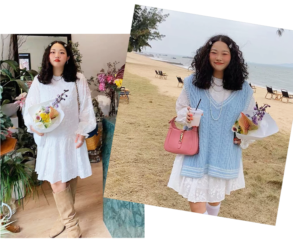 不同材质的小白裙还会有不同的风格特点,比如白纱裙就很有月光白天鹅的感觉,一整个温柔滤镜笼罩着。