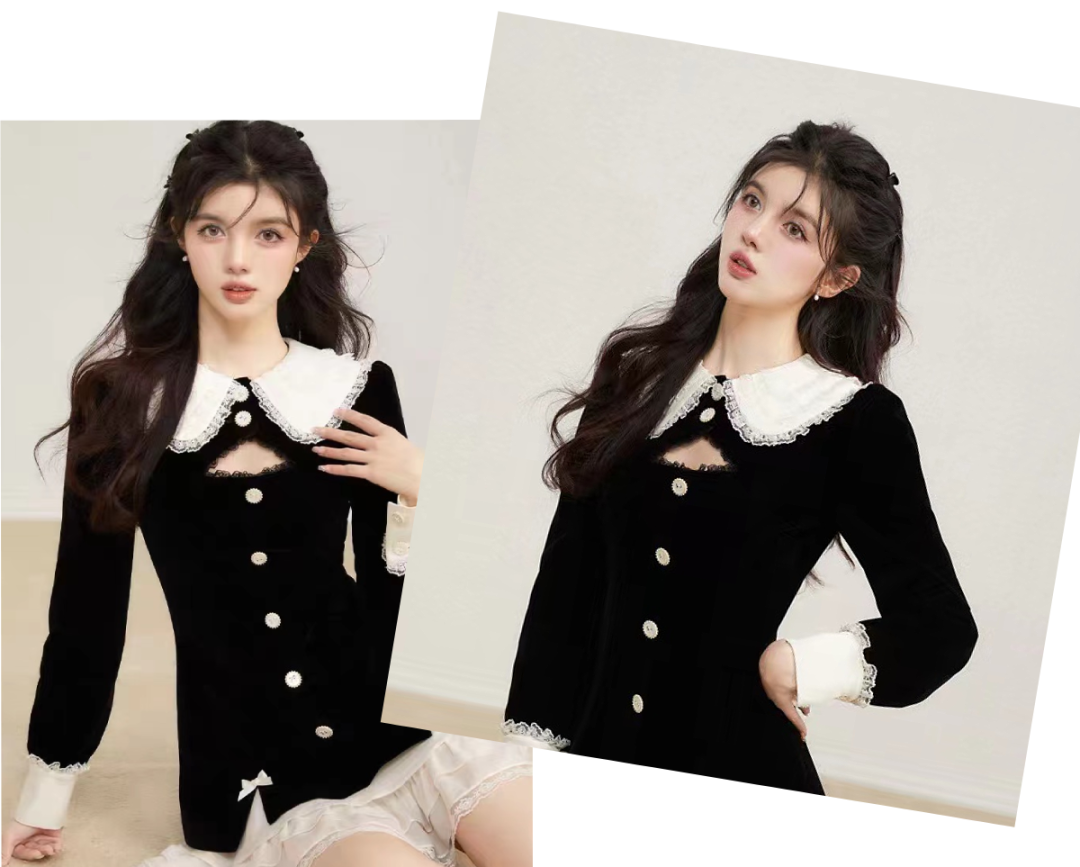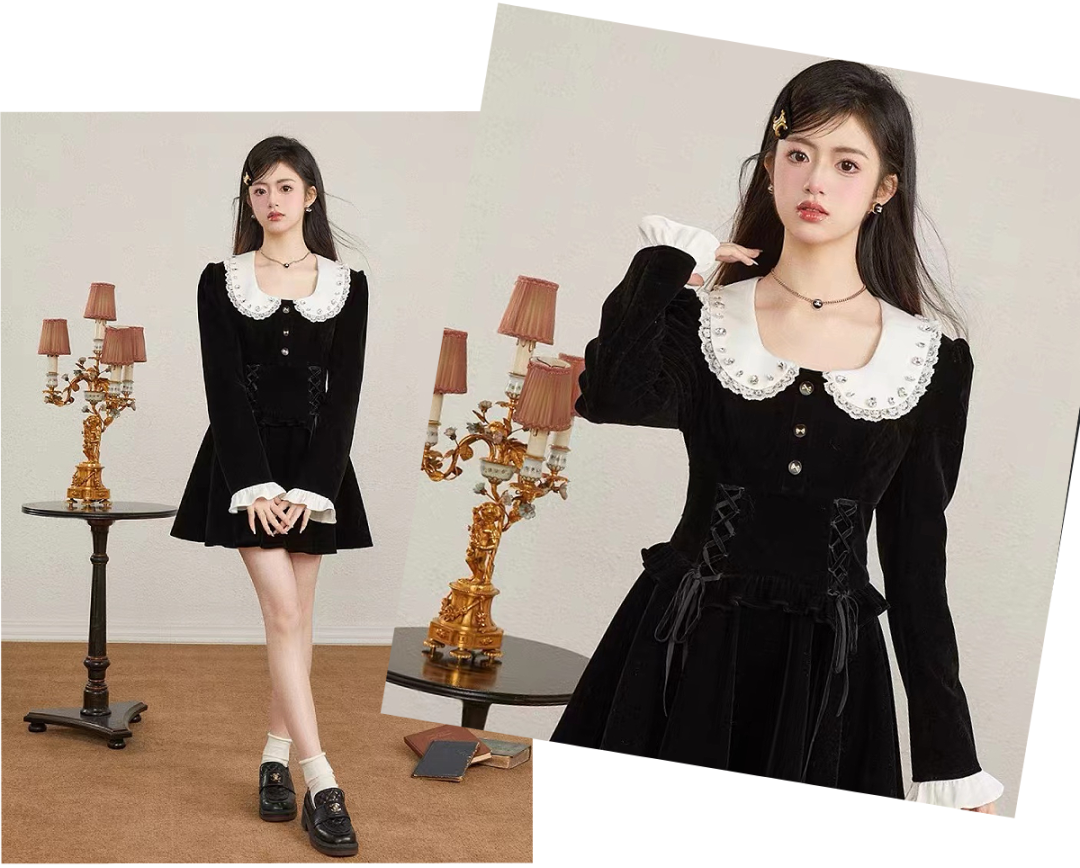 或者是大方的娃娃领的黑丝绒,看起来就很少女心。