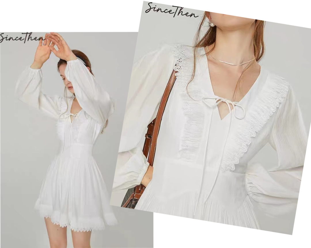 来自sincethen的甜美茶歇裙,加入了蕾丝元素,看起来会更有温柔感,就算是有点正式的场合也可以穿。