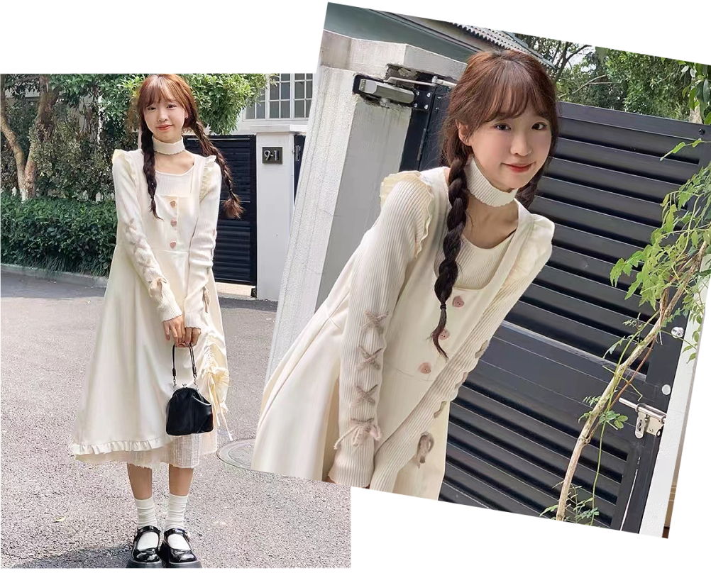 甜奶系方领背心裙,在木耳边的加持下更减龄。