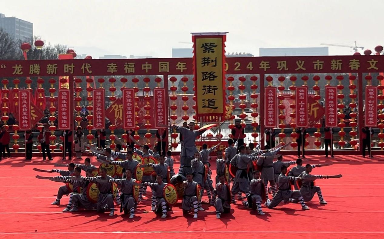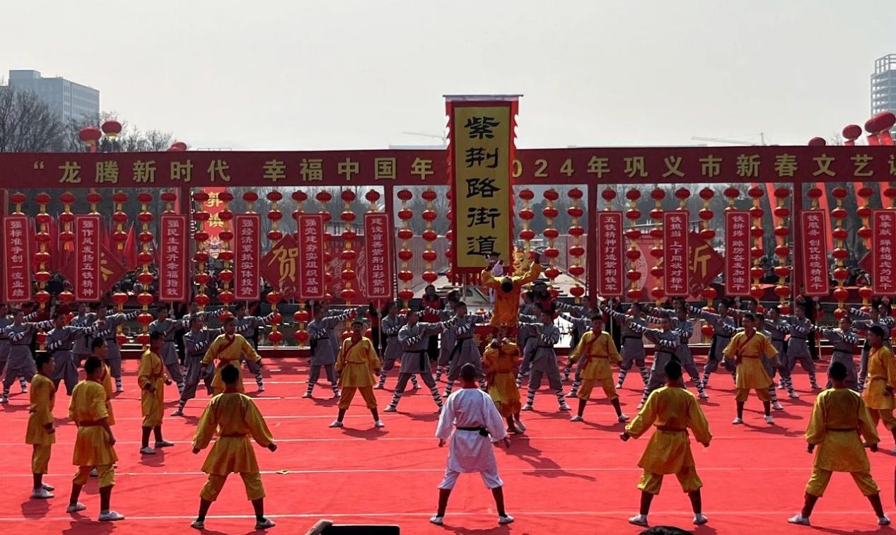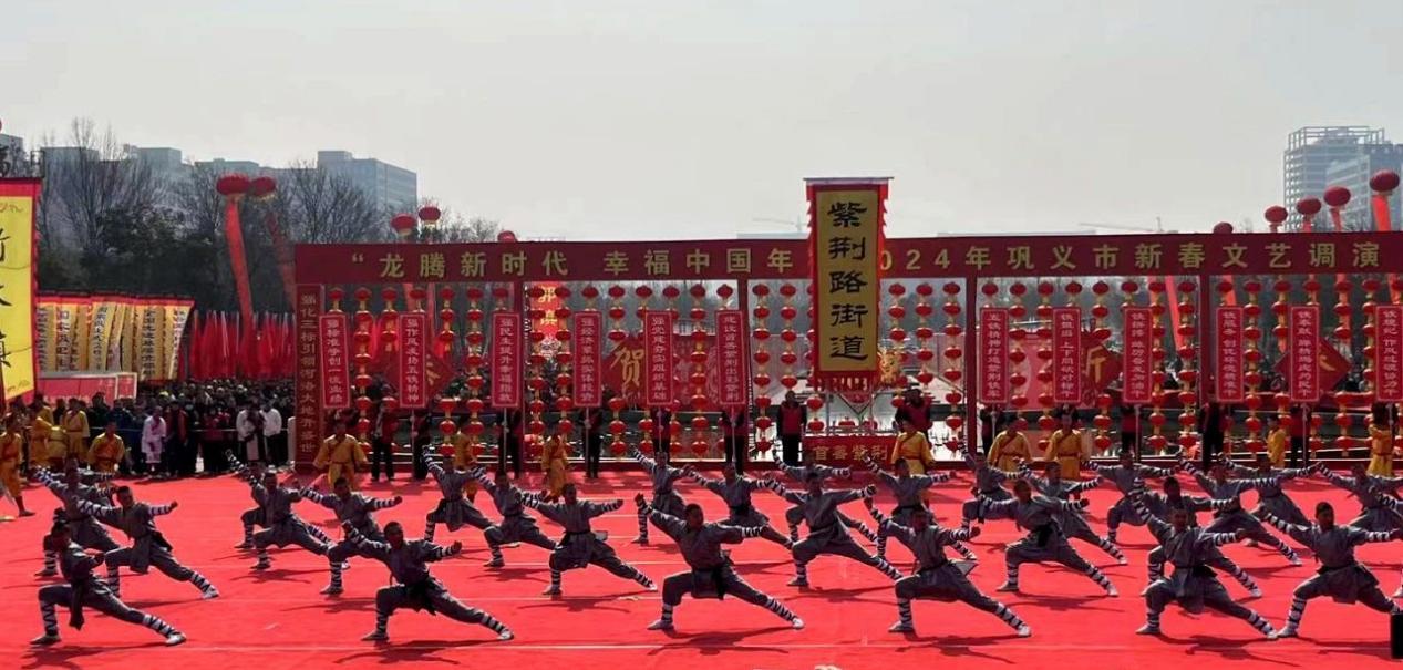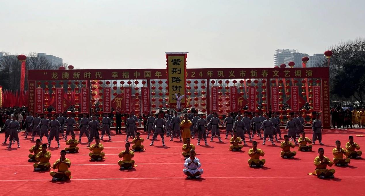 2月25日上午,少林小龙武校表演团100名队员在陈占锋主任,郭俊峰、王留杰、王军夺教练的带领下,应邀在巩义市行政中心南广场参加了“龙腾新时代 幸福中国年”2024年巩义市新春文艺调演节庆活动。