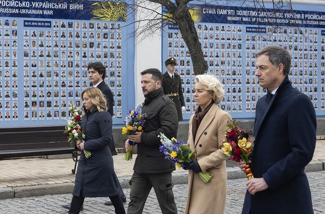 到了俄乌冲突2周年这天,一群西方领导人集体前往乌克兰首都基辅,展现自己的“援乌立场”没有动摇。同时,G7集团通过线上形式举行峰会,发布了一份联合声明,主要内容有三点。一是对乌克兰许下重要承诺,只要基辅当局提出需求,那么西方国家还会继续给乌克兰提供军事、经济援助;二是俄罗斯必须立刻无条件撤军;三是抨击中国“通过贸易给俄罗斯提供军民两用的材料和部件”。
