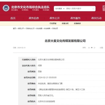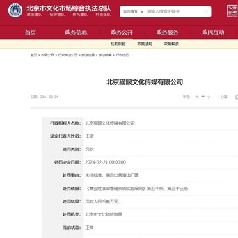 #大麦猫眼等擅自售票被罚#【擅自售票,大麦、猫眼、开心麻花被罚!】记者从北京市文化和旅游局获悉,近日,北京猫眼文化传媒有限公司、北京开心麻花演艺经纪有限公司、北京大麦文化传媒发展有限公司被罚。据处罚决定书显示,上述3家企业均因未经批准,擅自出售演出门票,违反《营业性演出管理条例实施细则》第五十条、第五十三条,被北京市文旅局分别罚款3万元。
