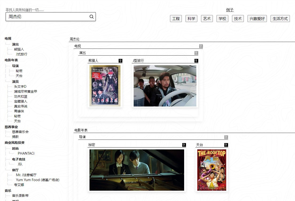 看起来像是可视化的维基百科的工具。这个工具可以帮助用户搜索关键词,并快速整理和组织各种信息,形成一个类似思维导图的结构,让用户能够快速明了地查看他们搜索的信息。