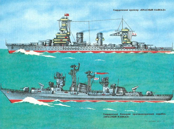 军舰:上为“红色高加索”号近卫巡洋舰,下为“红色高加索”号近卫大型反潜舰