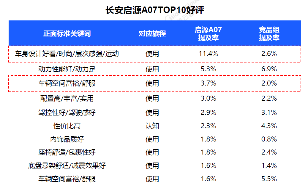 在中大型轿车市场,雅阁、汉、海豹、model 3等堪称佼佼者,刚上市的长安启源A07好比“初生猛虎”,在提及其的相关论坛舆情中,与已经处于成熟稳定期的竞对车系比较,并没有落后太多,主要是受品牌新上市影响,品牌认知体验还需提高。