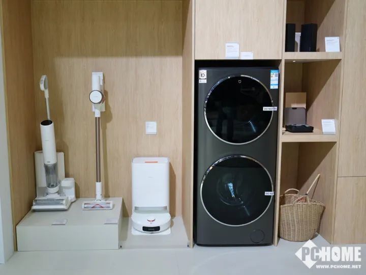 在手机产品之外,小米在智能家居方面有着丰富品类的产品。小米展示了小米电视、小米路由器、洗衣机、扫地机器人、吸尘器等多种产品。它们在小米生态的支持下,通过手机即可实现全面的监控或自动化使用。