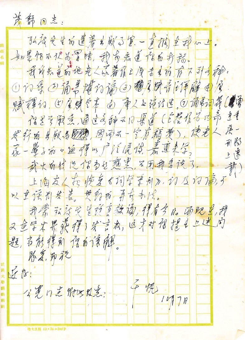 “弘度先生的遗著出版事宜,一直搁在我心上。……我蒙弘度先生饮食教诲,得有今日。” ——程 千 帆致刘茂舒,1979年10月7日