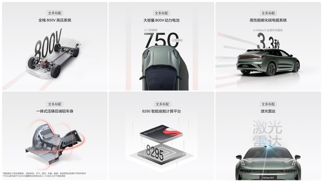单电机车型从200kW升级到310kW,四驱车型则从400kW升级到580KW。电池上此前全系标配三元锂电池,但新款车型同时用上了三元锂和磷酸铁锂电池,最快充电5分钟续航增加256公里。