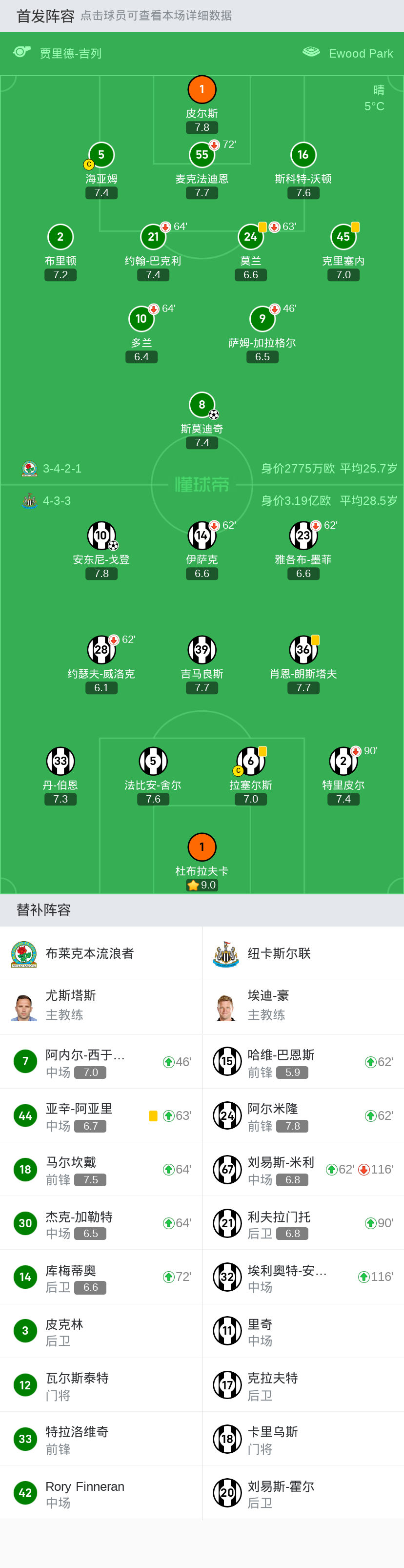 替换下场:90'2-特里皮尔, 62'23-雅各布-墨菲, 62'14-伊萨克, 62'28-约瑟夫-威洛克
