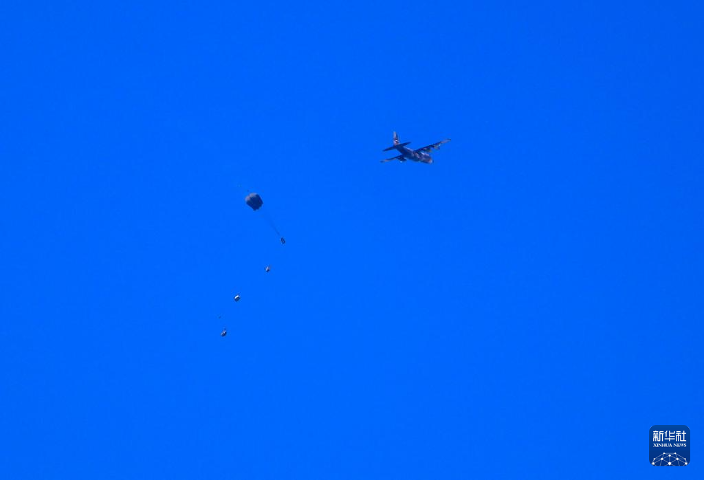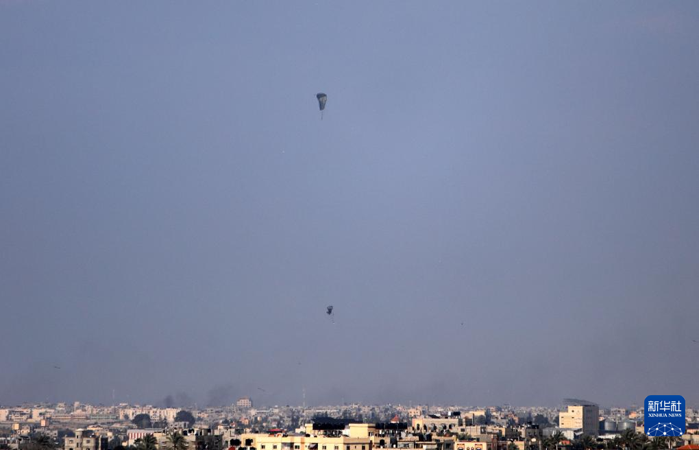 这是2月27日拍摄的向加沙地带空投的救援物资。