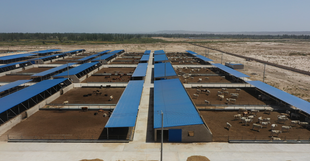 蓝天白云下,风吹草动,走进瓜州县肉羊、肉牛养殖综合示范园区,一栋栋标准化羊圈、牛舍整齐排列,圈舍内外干净整洁,数百头油光水滑、膘肥体壮的牛羊悠闲的吃着饲料,好不惬意。