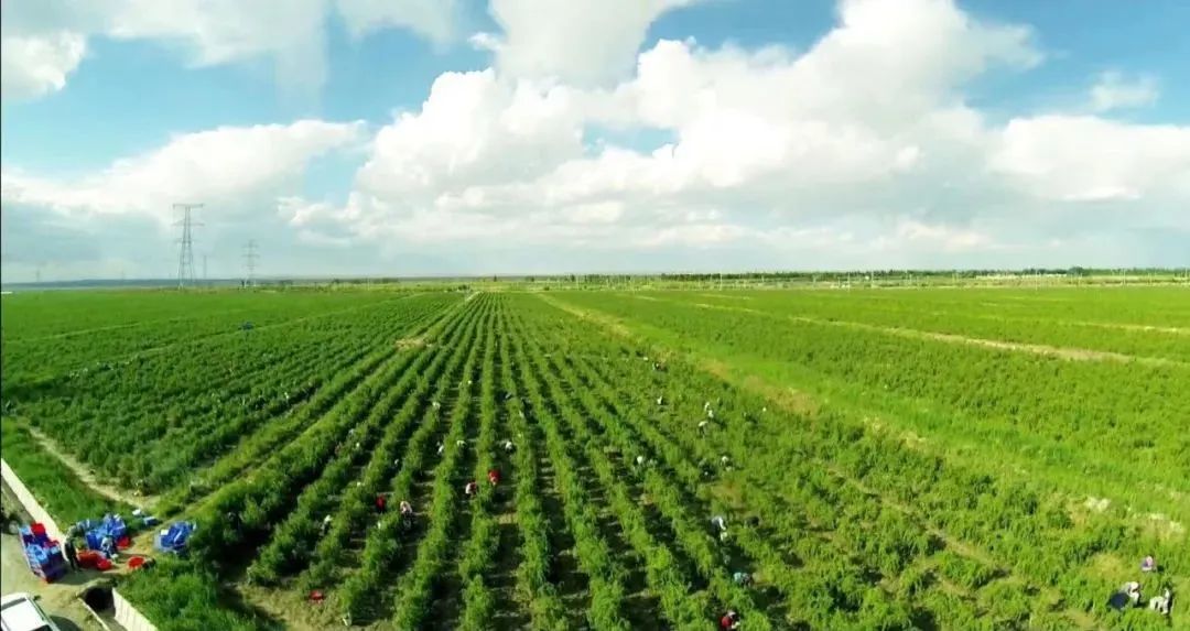 在瓜州,从田间采摘来的枸杞从绿色食品标准化生产基地出发,被加工成枸杞咖啡、枸杞芽茶、冻干枸杞、枸杞叶茶等好多产品,以千姿百态的方式走进千家万户,现如今,枸杞产业已成为当地农民脱贫致富的“金果产业”和“绿色银行”。