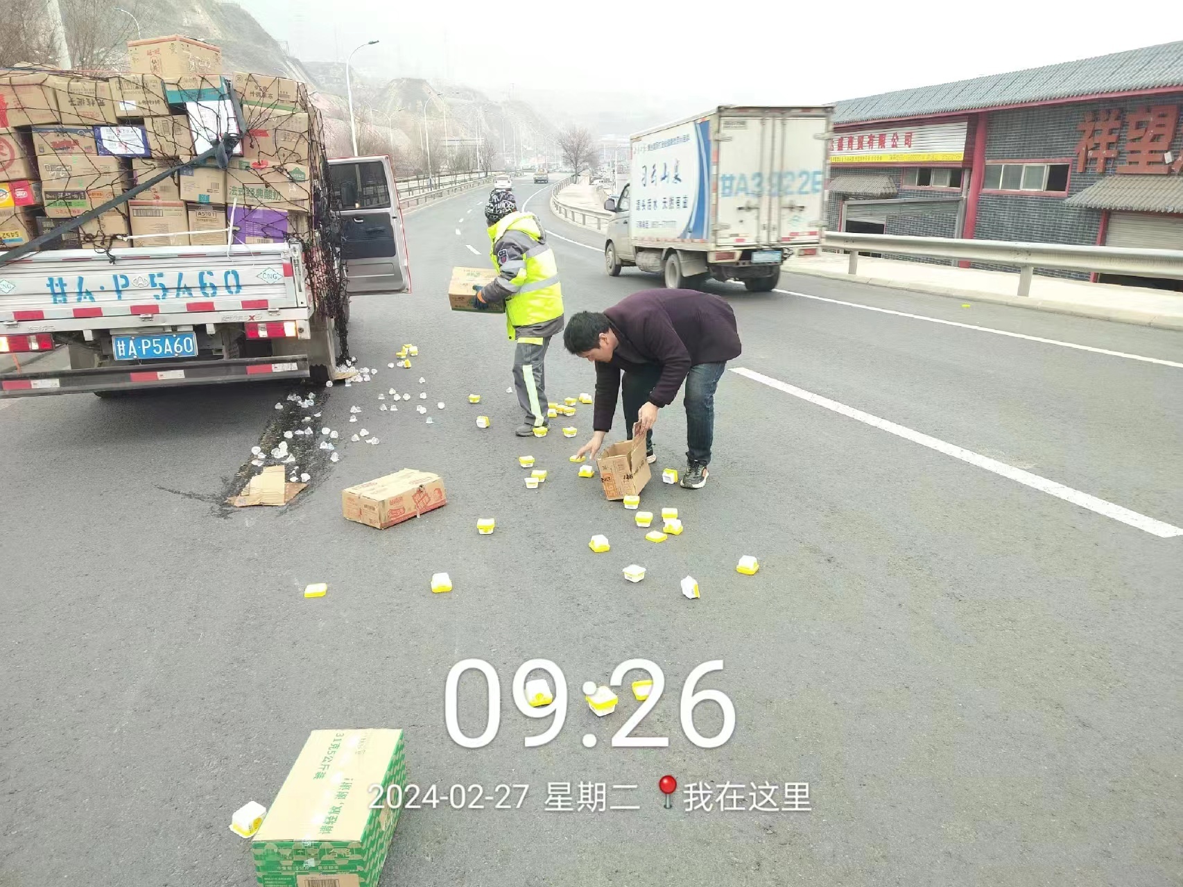 原标题:车载货物意外撒落 幸亏遇到了他们