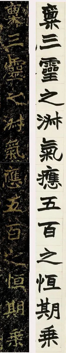 赵之谦临作与郑文公原碑作比较可以发现,本作品虽然是临作,但是并非对临,而是富有其浓郁个人性格色彩的意临,这恰恰是临习魏碑的关键。