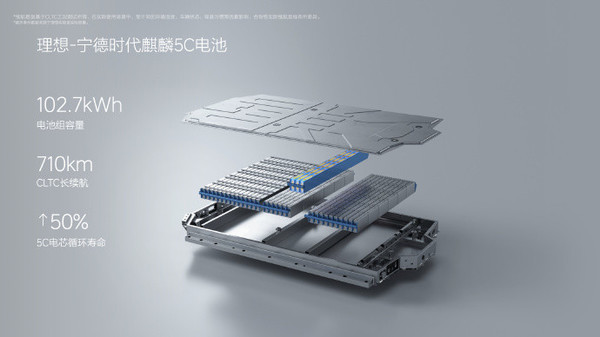 动力方面,理想MEGA支持5C充电,采用800V架构,匹配麒麟5C电池组,总电量102.7千瓦时,CLTC超长续航710公里。使用寿命方面,采用5C电芯,以5C充电的方式,比主流的三元电芯用2C的充电方式,循环寿命增加50%以上。无论是在-10度还是在40度的高温环境下,该车都能稳定的获得12分钟续航500公里的充电体验。