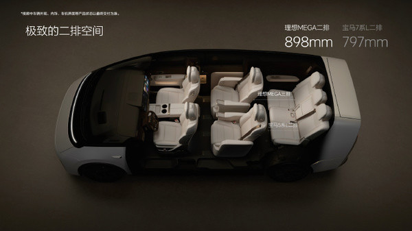 空间方面,理想MEGA拥有旗舰级的车身尺寸,是全球在售的空间最大的纯电动乘用车。此外,理想MEGA拥有全世界最大的后备厢,进深有680毫米,7人满座时,后备厢能放得下至少4个28寸行李箱、2个20寸登机箱和2个背包,足够全家人旅行两周的全部行李需求。后备厢的地板下面,有一个容积42升的储物柜。该车还为主驾配备了魔毯座椅,副驾是躺平的皇后座,二排的两个独立大沙发,第三排坐姿和第二排一样舒展。