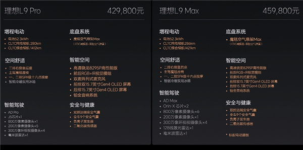 再说动力方面,理想MEGA最大功率400千瓦,542牛·米,零百加速5.5秒,小鹏X9最大功率370千瓦,640牛·米,零百加速5.7秒。