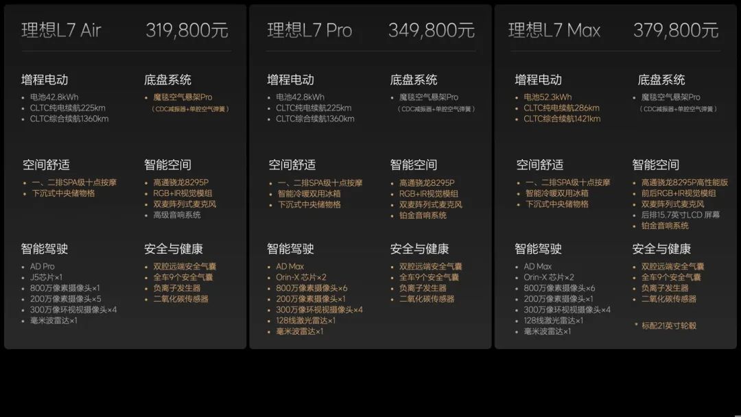 其中2024款理想L7,家庭五座旗舰SUV,全国统一零售价31.98万元-37.98万元;
