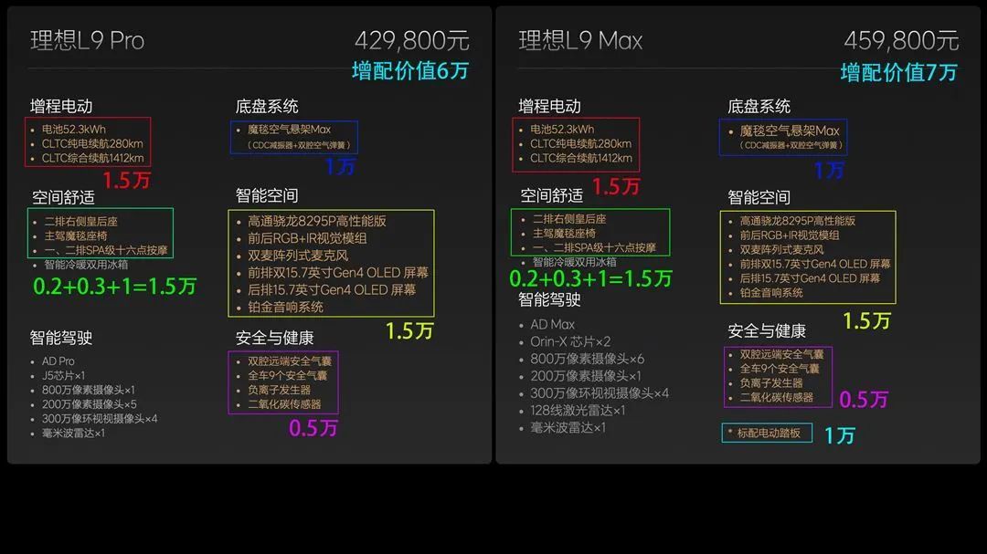 2024款的L9 PRO,增配价值为1.5+1.5+1+1.5+0.5=6万