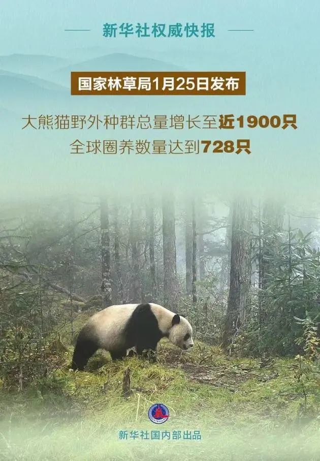 “野外种群总量从上世纪80年代的约1100只增长到近1900只,全球圈养数量达到728只,遗传多样性不断上升”,在2024年3月3日第11个“世界野生动植物日”来临之际,国家林草局发布的这些关于国宝大熊猫的数据给我们带来了惊喜。这些数据告诉我们:大熊猫栖息地的环境在持续改善,那些数量不断增加的可爱的大熊猫,在它们的家园舒适惬意地生活。