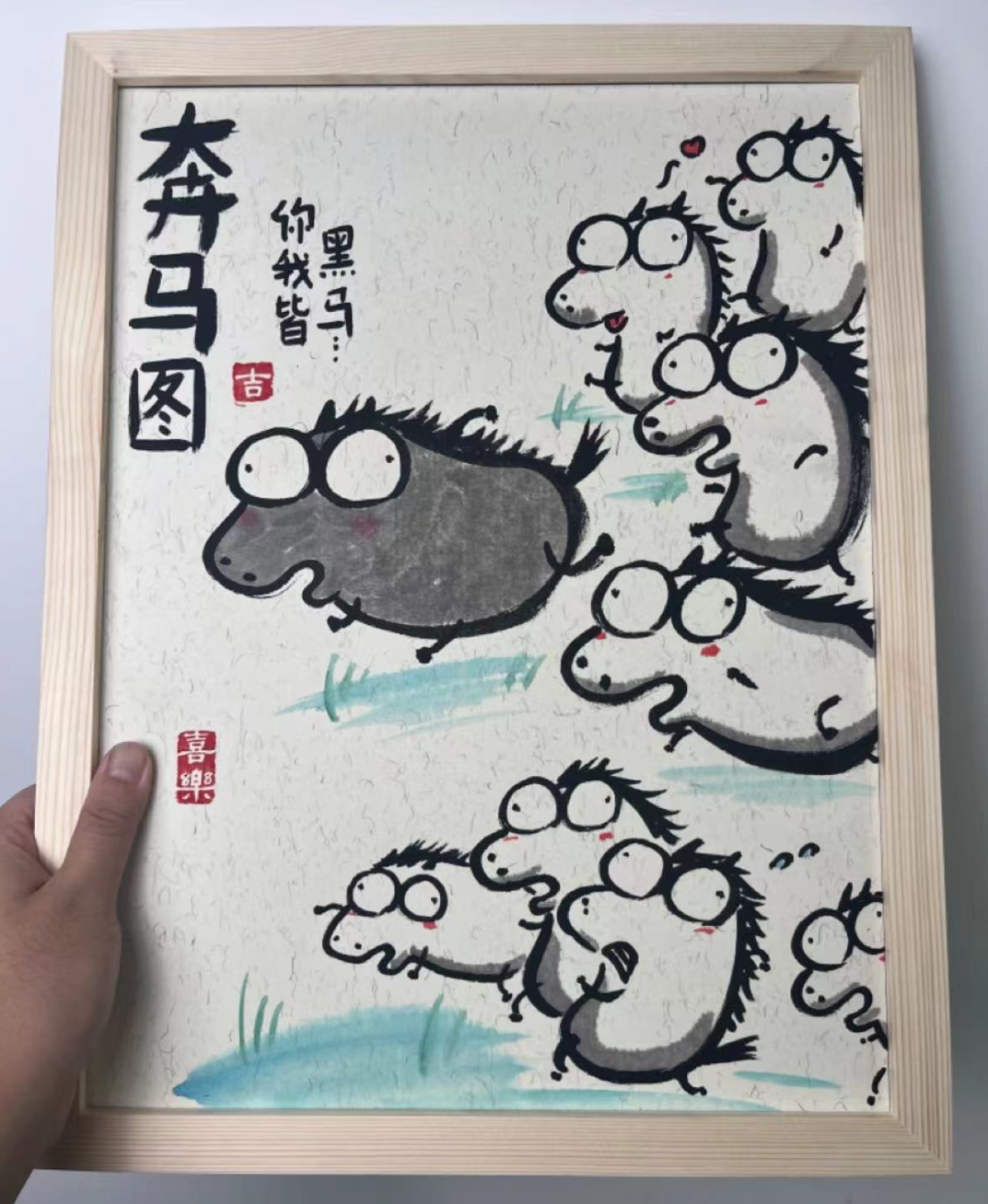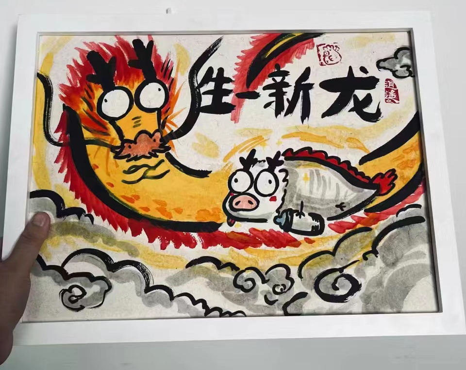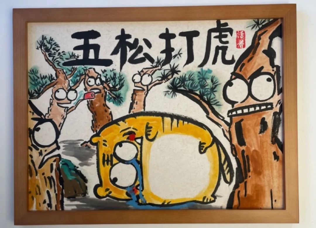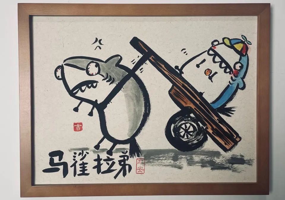 看着当时网络上的潮流字,灵机一动,用毛笔创作出一系列“丑得可以”的“怪”画,