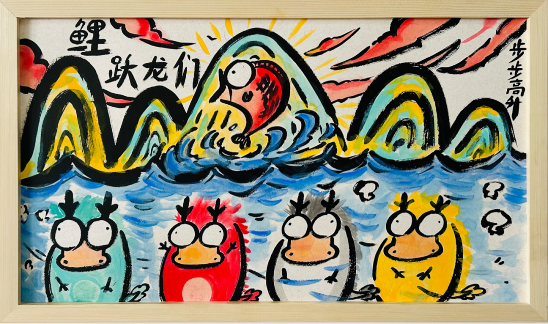 色彩鲜艳,画面饱满,再画龙点睛地搭配上四字成语谐音梗,