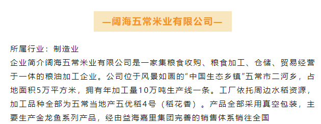 视频中提到的“阔海五常米业有限公司”,王海称,是金龙鱼粮油股份有限公司的米业代收、代储企业。财联社记者注意到,2022年3月,由“五常市妇联”发布的一则招聘信息显示,阔海五常米业有限公司是一家集粮食收购、粮食加工、仓储、贸易经营于一体的粮油加工企业,位于五常市二河乡,加工品种全部为五常当地产五优稻4号(稻花香)。产品全部采用真空包装,主要生产金龙鱼系列产品,经由益海嘉里集团完善的销售体系销往全国。