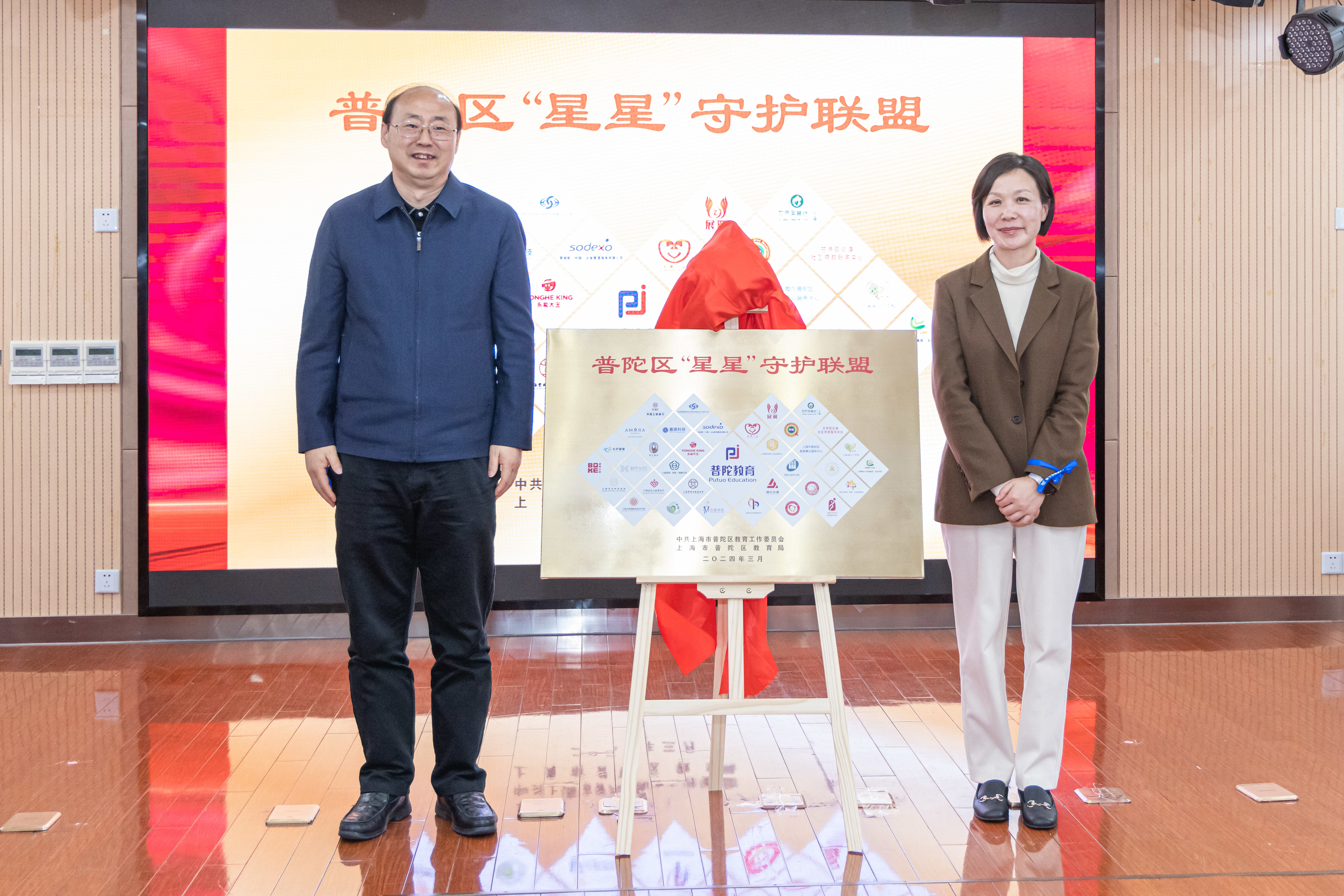 普陀区委副书记周艳,区委常委、宣传部部长刘东昌共同为“普陀区‘星星’”守护联盟”揭牌