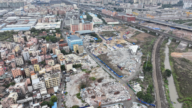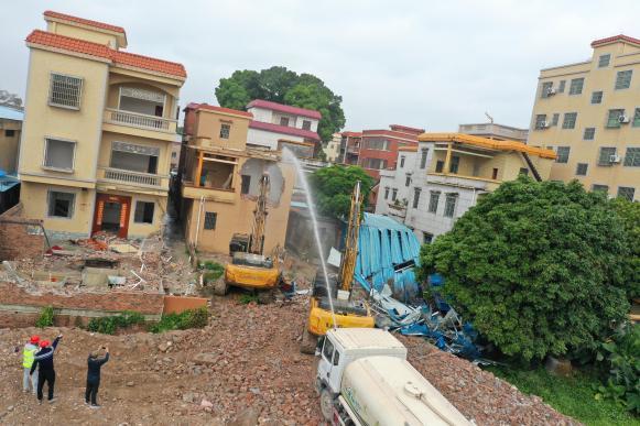 里水镇会场对广佛环线佛山西站至广州北站段项目涉及地块处进行拆除。