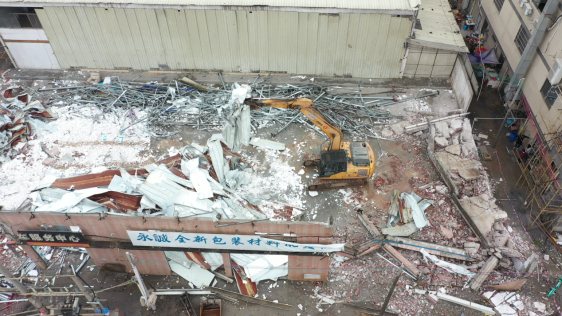 桂城街道分会场,五斗桥重建项目的拆除现场“热辣滚烫”,伴随钩机轰鸣,项目地块住宅等建构筑物被拆除。
