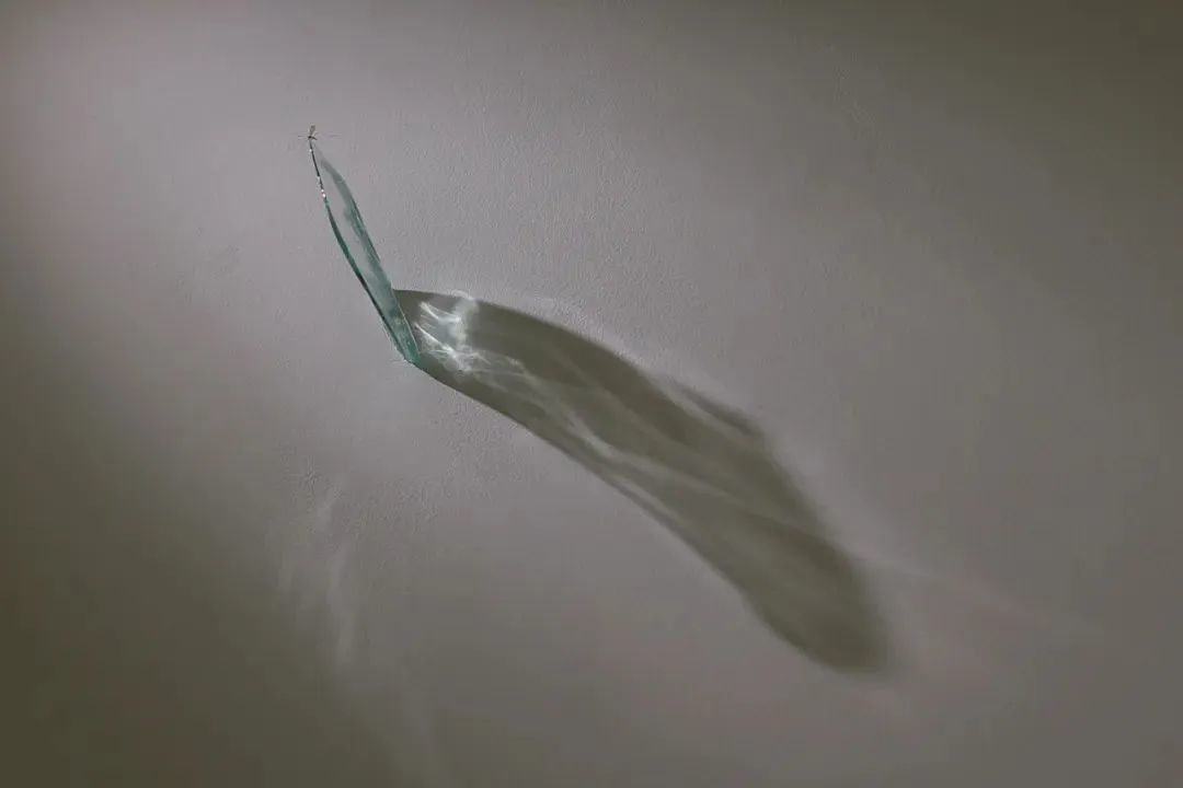 偶然在工作室拾得的玻璃碎片、立于玻璃刃上的蚊子尸体,两种残破的“力”,构成了精准稳定的平衡:微渺的生命与外物相互容纳,浑然一体,不辨“器”与“迹”。这是尹秀珍近期创作向精神性和禅意靠拢的直接体现——如至轻至贱的蚊虫高蹈在湛纯似水晶的玻璃片上,一切驳杂、沉重的思虑,最终回到了轻盈而精纯的《天意》中。