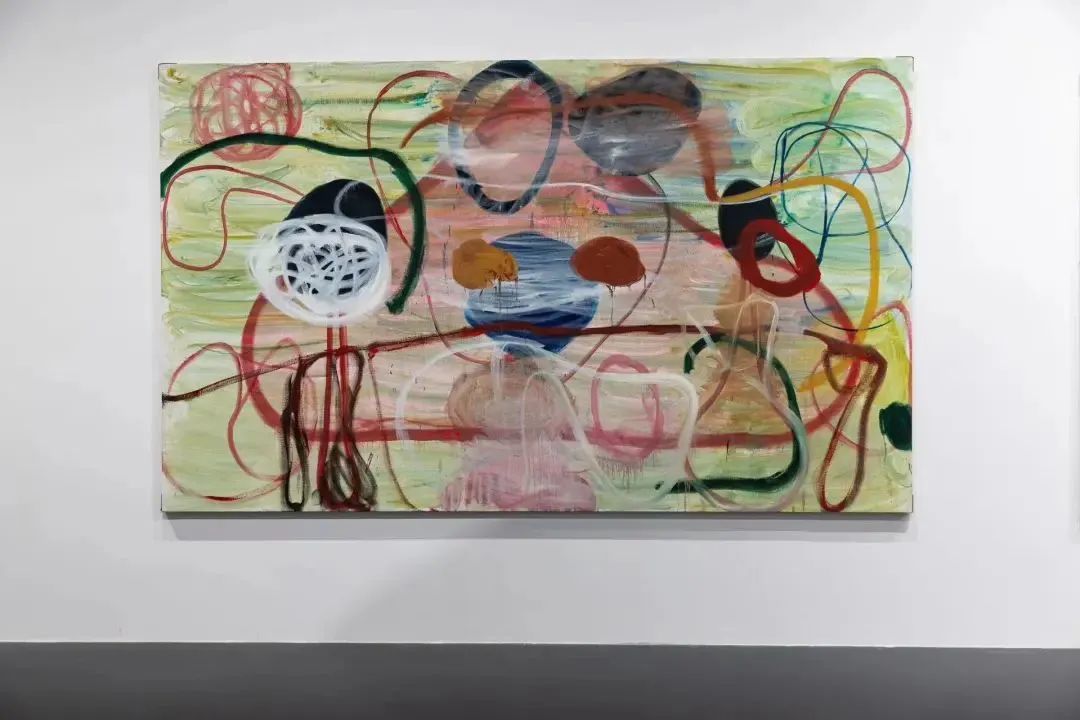“当我看着一面墙,或是一片天空,它总是充满了各种痕迹。我会给这些痕迹起上现实中的人的名字,于是这变得有趣起来,它既是可见的,也是不可见的。”与多数纯然的抽象画作不同——绘画行进过程中,色彩和线条在张恩利心中开始呼应记忆里“一类人,或者一个人,或者从事某个行业的人,甚至是具有某种特质的人”,这让他的画作始终建筑于物质世界的基底之上,如同一个人看不见的能量场域或是刻意隐藏起的表情。