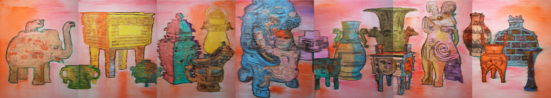 赵赵《中国文物》,布面油画,250 × 1400 cm,2022-2023