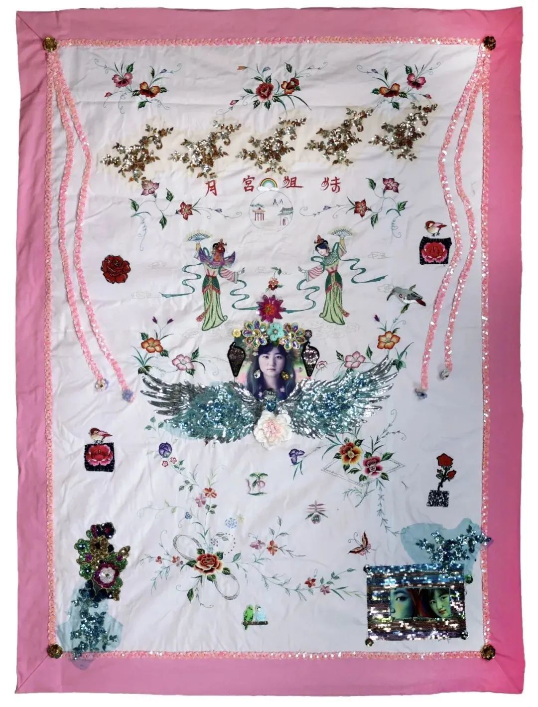 叶甫纳,月宫仙女,布面综合材料拼贴,2023,180 x 130 cm,图片由艺术家提供