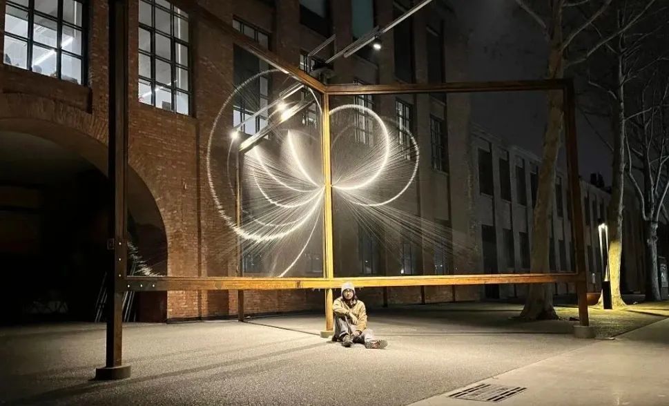 像《光环》这件装置作品,我更愿称之为一件雕塑作品,自始至终我都在用雕塑的语言呈现着我对物质性的时间和空间的一种真实感受,而光则是我所选择的表达介质。唯有真正在现场看到这件作品时,阳光、灯光与人之间的互动才能感受到某种时空感。当观众在空间中移动、变化物理位置,从不同角度去欣赏这件作品时,目之所及的光不尽相同,感官的体验是非常微妙和丰富的。