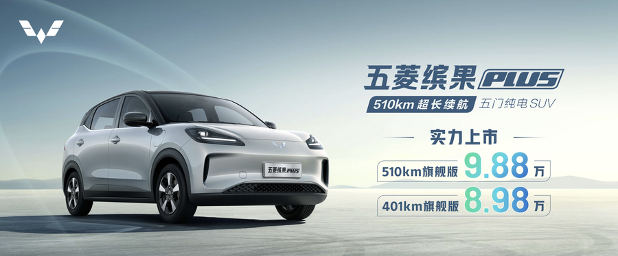 五菱缤果PLUS于今日正式上市。首发共推出两个车型版本,包括401km旗舰版和510km旗舰版,官方指导价分别为8.98万元、9.88万元。