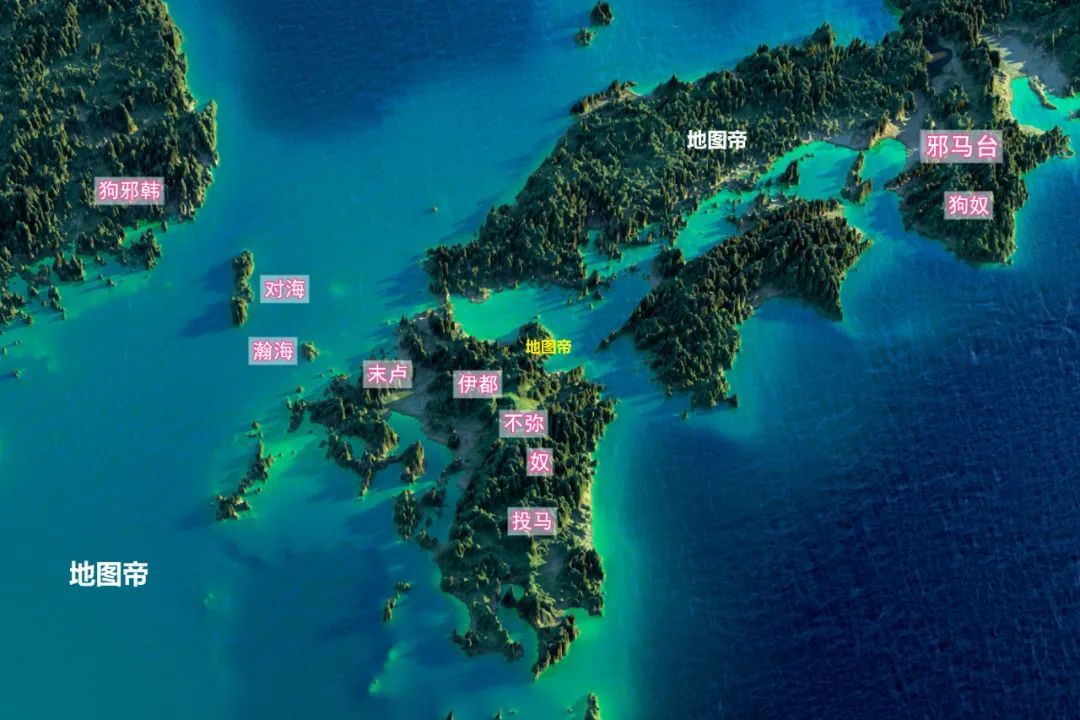 当时朝鲜半岛南部的部落是狗邪韩,对马岛上的部落叫对马(对海),而邪马台以南还有个部落叫狗奴。